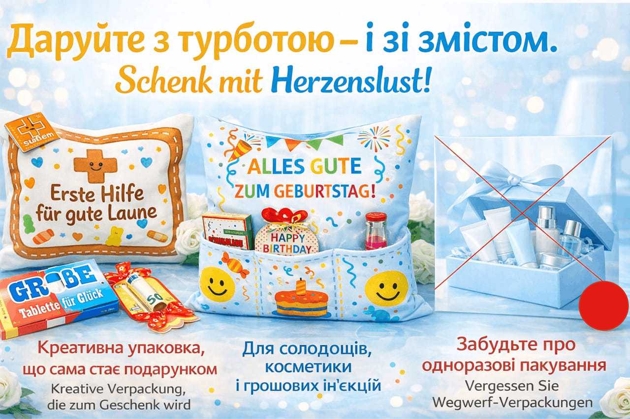 Dekoratives Kissen mit Taschen. Auf Bestellung gefertigt. Autorengeschenke von GESCHENKE.FUN.