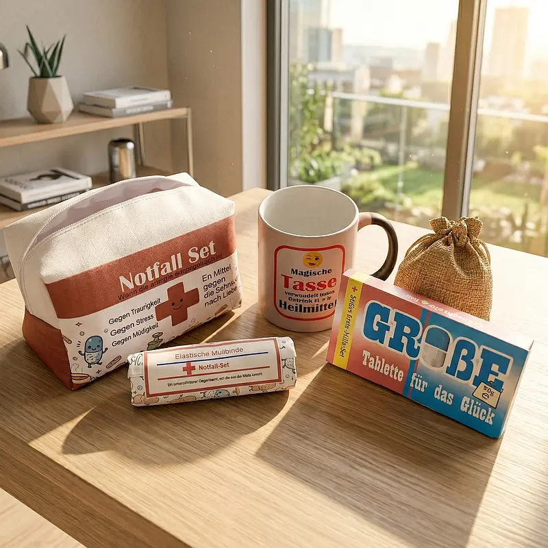Eine Kosmetiktasche mit elastischer Mullbinde ist ein schönes und praktisches Geschenk für Ihre Tochter, beste Freundin, Schwester, Mutter, Großmutter oder Freundin. Wollen Sie ein Geschenk gestalten, das wirklich überrascht und Freude bereitet? Gerne stelle ich für Sie solche originellen „Notfall-Sets“ auf Bestellung her! Notfallkoffer Geburtstag selber machen.