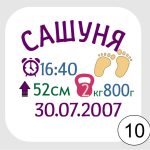 ✔ персонализация (имя, дата, время, рост, вес)